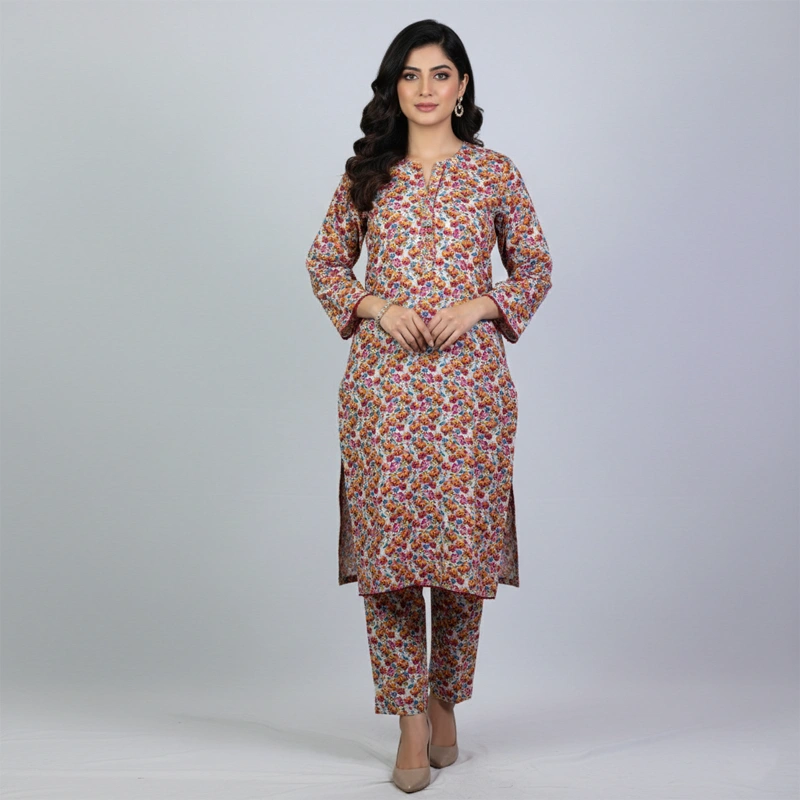Step into elegance with our Floral Digital Printed Khadar Collection. This 2-piece outfit is designed for the modern Pakistani woman who values both comfort and traditional charm. The soft, multi-colored floral pattern makes it a versatile choice for office wear, university, or casual tea parties.